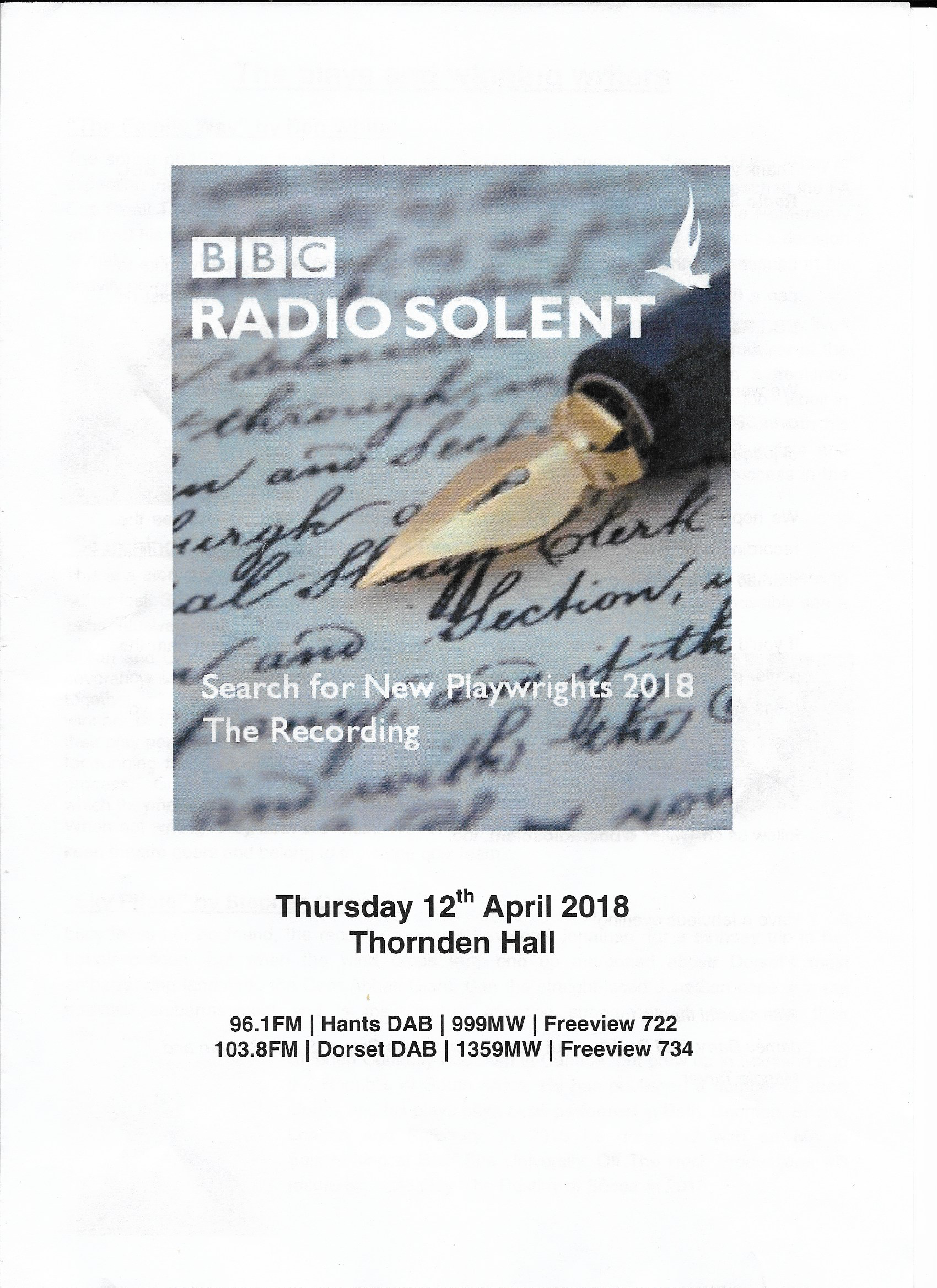 BBC Solent Radio Playwrights April 13, 2018April 13, 2018 ~ planbsteve Published by planbsteve Resident Writer, Dialect X/Lake 32. Bristol Old Vic Open Session writer, winner BBC Solent Radio Playwright competition. MA in Scriptwriting from Bath Spa University. View all posts by planbsteve